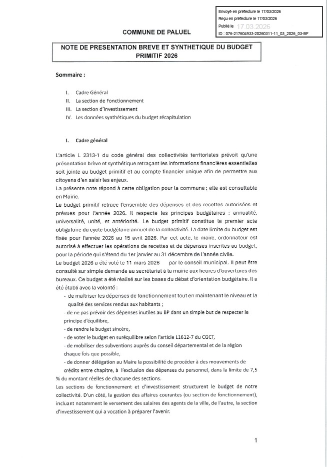 Note de présentation brève et synthétique du budget primitif 2026